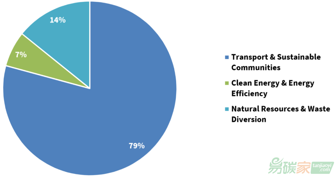 運輸和可持續(xù)社區(qū)項目。總體而言,這些氣候投資可分為三類:(1)交通運輸和可持續(xù)社區(qū);(2)清潔能源和能源效率:(3)自然資源和垃圾管理。加利福尼亞州通過拍賣收入為各種交通項目提供資金,從鐵路和道路運輸項目到低碳/零排放電動汽車的激勵措施項目和教育項目。此外,加州還實施了60,000個能效項目,這有助于加州實現(xiàn)其2030年目標,將