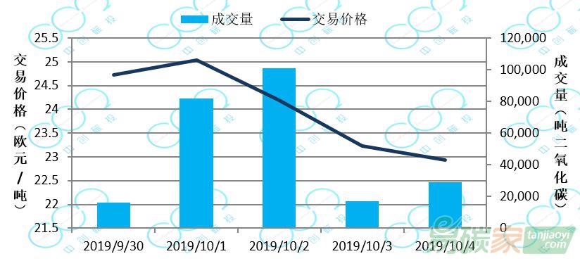 2019年09月30日至2019年10月04日,新西蘭碳市場(chǎng)價(jià)格在24.80-24.87美元/噸之間波動(dòng)。