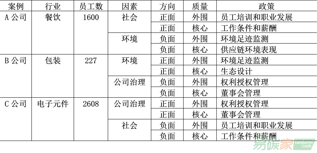 二是對投資決定的影響。當披露差的環(huán)境、社會和公司治理相關政策時,分別會降低-29.17%、-50%和-30.77%的投資可能性。并且除公司治理以外,其大多數(shù)影響源于核心策略的負面ESG表現(xiàn);而當好的ESG相關政策被披露時,投資者僅對環(huán)境正面政策披露作出反應,可以提升11.54%的投資可能性。具體情況見表2: