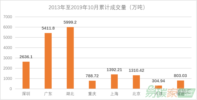 圖3:碳交易2013年至2019年10月交易價(jià)格變化情況