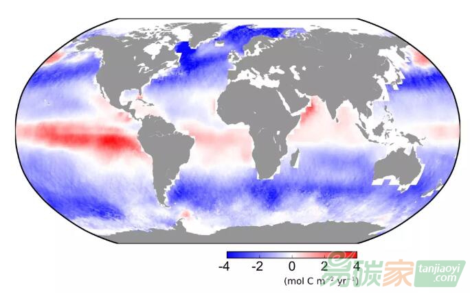 為了獲得關(guān)于二氧化碳在海面向下流動(dòng)的更準(zhǔn)確的數(shù)值,研究人員利用了有關(guān)海表轉(zhuǎn)移過程的新知識(shí)以及來自《表面海洋二氧化碳地圖集》(Surface Ocean Carbon Dioxide Atlas)的相關(guān)數(shù)據(jù),這是一項(xiàng)正在進(jìn)行的大型國際合作,旨在收集和匯總二氧化碳在上層海洋的測量值 。