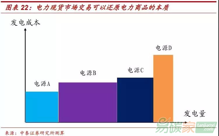 電力現(xiàn)貨市場(chǎng)交易可以還原電力商品本質(zhì)屬性。如前文所屬,中國(guó)電力系統(tǒng)在某種程度依然執(zhí)行發(fā)電計(jì)劃,省級(jí)計(jì)劃?rùn)C(jī)構(gòu)(通常是省級(jí)經(jīng)信委)負(fù)責(zé)決定各類發(fā)電機(jī)組運(yùn)行小時(shí)數(shù),但決定原則不得而知。但在電力現(xiàn)貨市場(chǎng)交易制度下,電力將恢復(fù)商品本質(zhì)屬性,采用邊際成本定價(jià),各種電源在上網(wǎng)時(shí)比較的就是報(bào)價(jià)的高低(發(fā)電成本的高低),此時(shí)對(duì)于未來新能源發(fā)電成本較低的情況下,新能源將優(yōu)先上網(wǎng),不再受不穩(wěn)定電源以及年度發(fā)電計(jì)劃等限制。