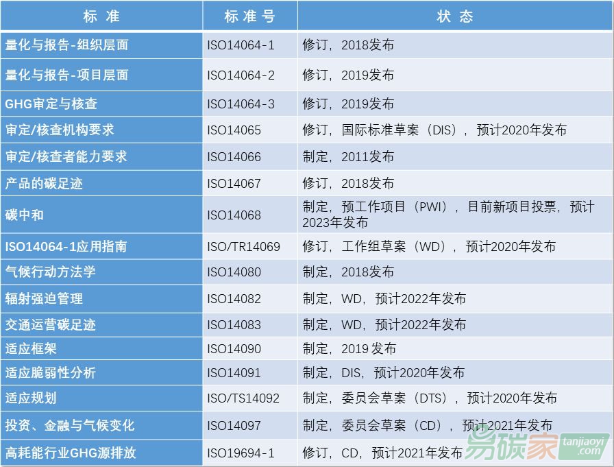 化工作,密切跟蹤國(guó)際標(biāo)準(zhǔn)的最新動(dòng)向,聯(lián)合主持了ISO14090的制定工作,目前已發(fā)布16項(xiàng)碳排放管理國(guó)家標(biāo)準(zhǔn)。