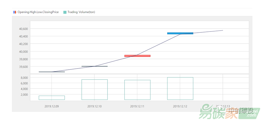 2019年12月09日至2019年12月13日,韓國碳市場價(jià)在39450-40550韓元/噸之間波動(約33.6-34.5美元/噸)。