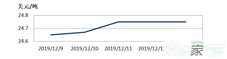 2019年12月09日至2019年12月13日,新西蘭碳市場價(jià)格在24.65-24.75美元/噸之間波動。