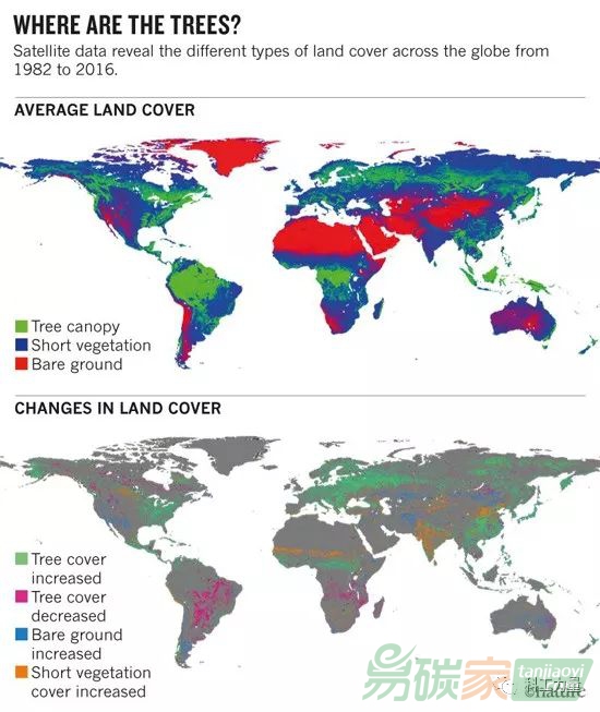 全球1982~2016年林地變化衛(wèi)星數(shù)據(jù)圖 來(lái)源:《自然》雜志
