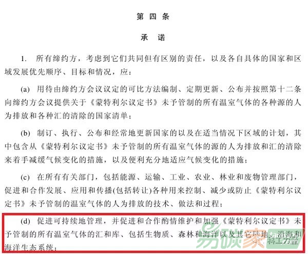 《聯(lián)合國(guó)氣候變化框架公約》第四條第1款(d)項(xiàng)