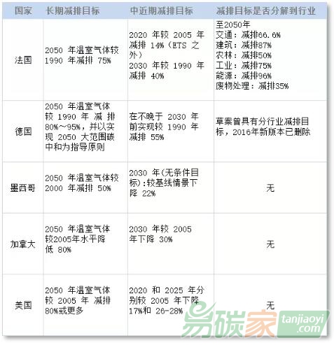 (整理自各國(guó)溫室氣體長(zhǎng)期減排或氣候保護(hù)方案)