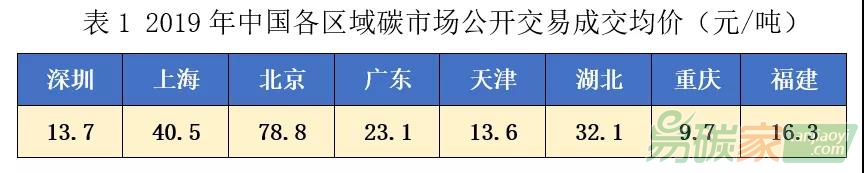 碳市場的配額公開交易成交均價如下表所示,其中北京市場成交均價最高,達(dá)78.8元/噸,重慶市場成交均價最低,為9.7元/噸。