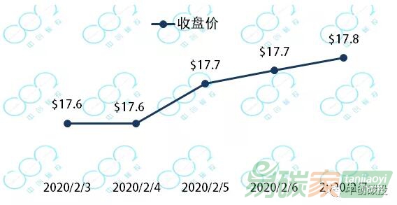 2020年02月03日至2020年02月07日,新西蘭碳價(jià)自17.6美元小幅上漲至17.8美元每噸。