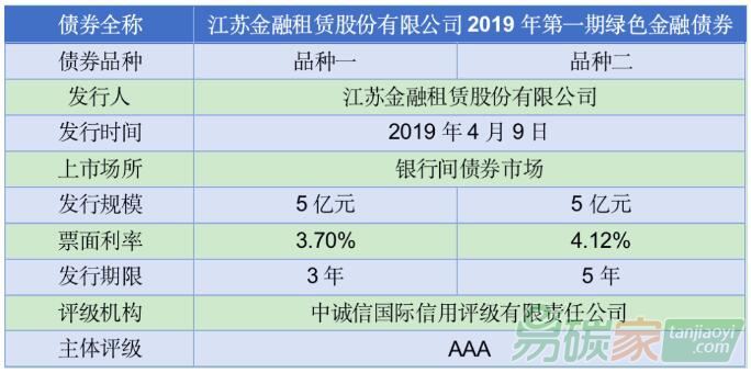 表 2 江蘇金融租賃股份有限公司2019年第一期綠色金融債券基本要素表