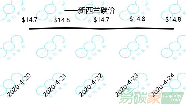 2020年4月20日至2020年4月24日,新西蘭碳價(jià)在14.7-14.8美元間小幅波動(dòng)。