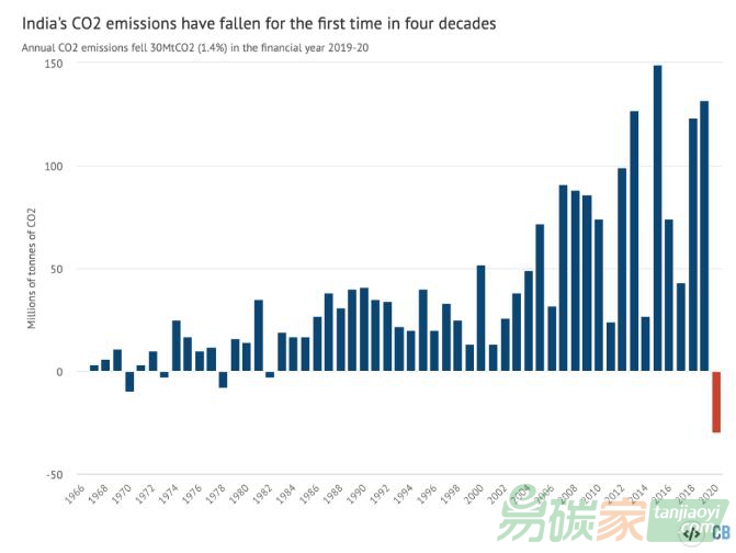 碳排放量下降了約1.4%。這是印度二氧化碳排放量40年來首次同比減少。