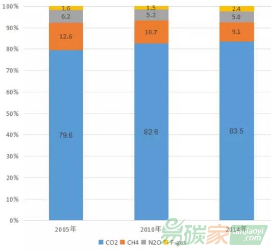 圖1 2005-2014年中國(guó)溫室氣體排放種類構(gòu)成