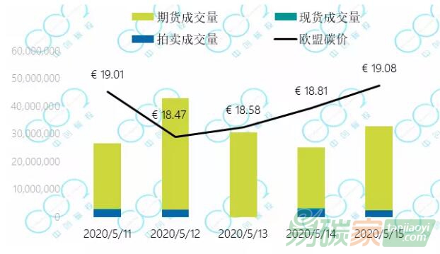 2020年5月11日至2020年5月15日,歐盟碳價(jià)在周二小幅下挫至18.47歐元每后反彈上漲至19.08歐元每噸。5月1日歐盟委員會(huì)發(fā)布的數(shù)據(jù)顯示,尚有300多家企業(yè)未能履行其在歐盟