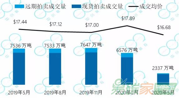 加州-魁北克碳市場(chǎng)的初始配額發(fā)放以拍賣為主,每個(gè)季度舉行一次拍賣。2020年拍賣基價(jià)設(shè)定于16.68美元,比去年提高了7%。受疫情影響,美國(guó)大量企業(yè)停工,第二季度配額拍賣成交慘淡,拍賣成交量?jī)H為供應(yīng)量的35%。