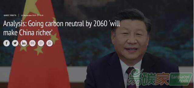 碳中和將使中國變得更加富裕”(Analysis: Going carbon neutral by 2060 ‘will make China richer’)。