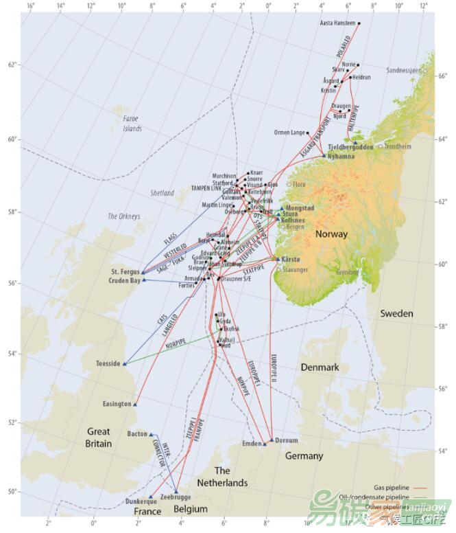 圖1 北海中北部地區(qū)油氣管網(wǎng)圖