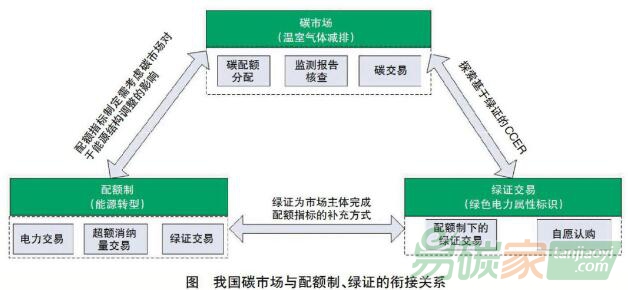 碳市場建設(shè)與配額制、綠證交易機(jī)制的銜接需要關(guān)注以下兩方面(見圖)。