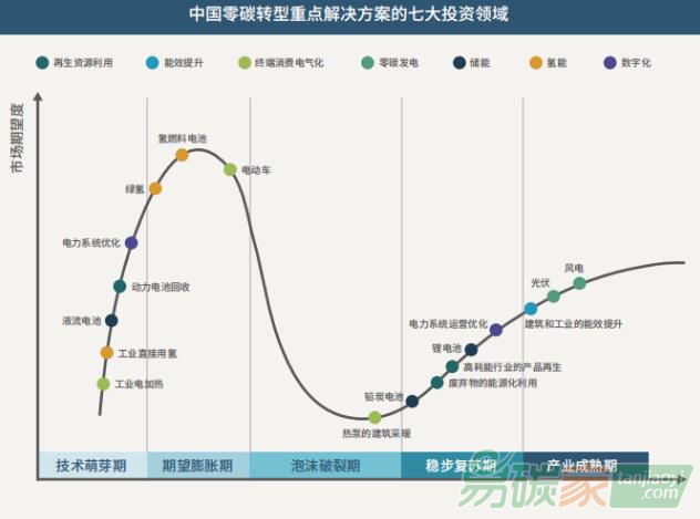 中國零碳轉(zhuǎn)型七大投資領域產(chǎn)業(yè)發(fā)展階段。圖片來源:《零碳中國·綠色投資》報告