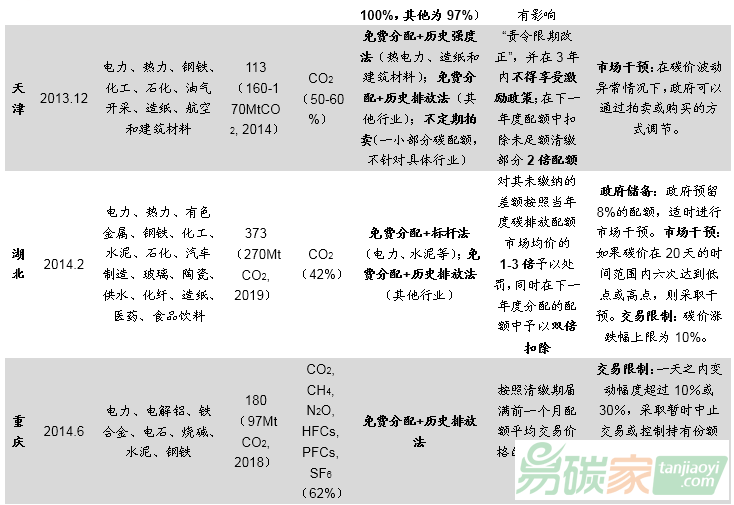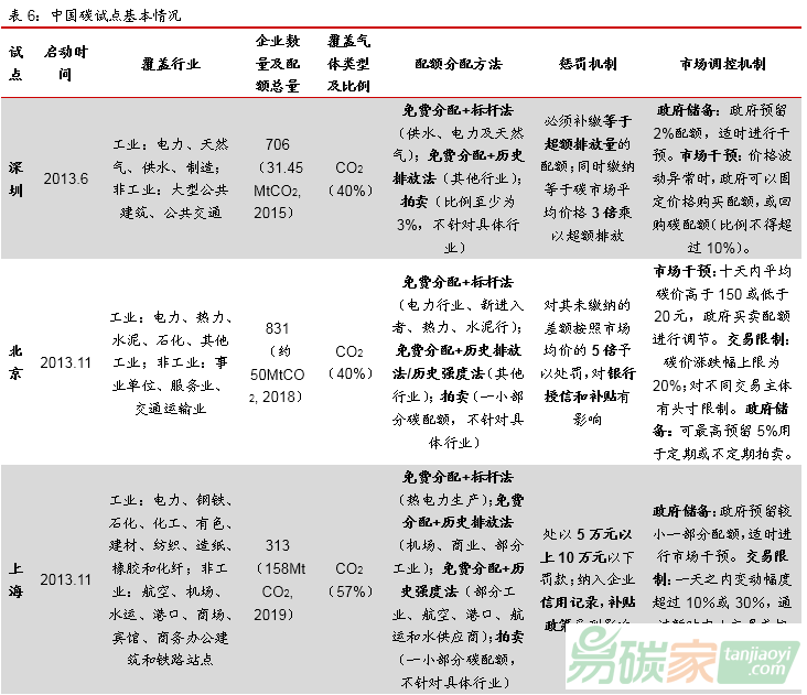 中國碳交易試點(diǎn)在碳排放權(quán)交易機(jī)制設(shè)計(jì)上呈現(xiàn)出框架相同、細(xì)節(jié)存異的特征。