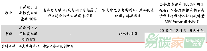 各試點(diǎn)實(shí)行不同抵消機(jī)制,抵消比例5%-10%之間。各試點(diǎn)均以CCER作為碳排放抵消指標(biāo),但抵消比例不同。北京、上海試點(diǎn)CCER抵消使用比例不得超過當(dāng)年核發(fā)配額量的5%;天津試點(diǎn)抵消使用比例不超過當(dāng)年實(shí)際排放量的10%;深圳、湖北試點(diǎn)抵消使用比例不超過配額量的10%;廣東的CCER抵消使用比例不超過企業(yè)上年度實(shí)際排放量的10%;重慶抵消使用比例不超過審定排放量的8%。