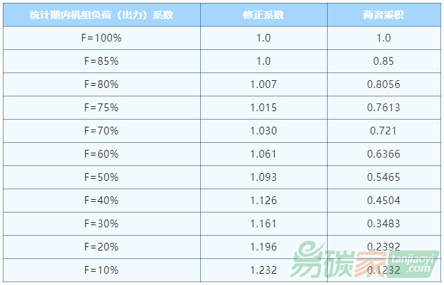 機(jī)組負(fù)荷(出力)系數(shù)修正系數(shù)針對(duì)的是機(jī)組負(fù)荷(出力)系數(shù),即統(tǒng)計(jì)期內(nèi),單元機(jī)組總輸出功率平均值與機(jī)組額定功率之比,亦即機(jī)組利用小時(shí)數(shù)與運(yùn)行小時(shí)數(shù)之比。根據(jù)分配方案的計(jì)算方法計(jì)算機(jī)組負(fù)荷(出力)系數(shù)修正系數(shù)如下表所示:
