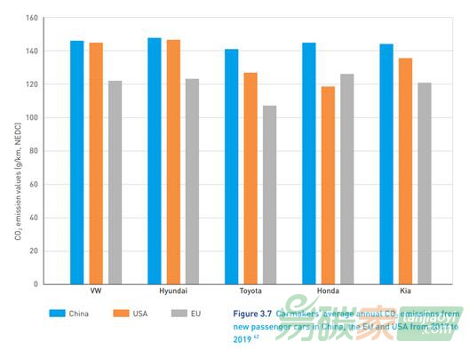 北京現(xiàn)代的平均二氧化碳排放量也比大眾與現(xiàn)代在歐盟的排放量高出20%左右。