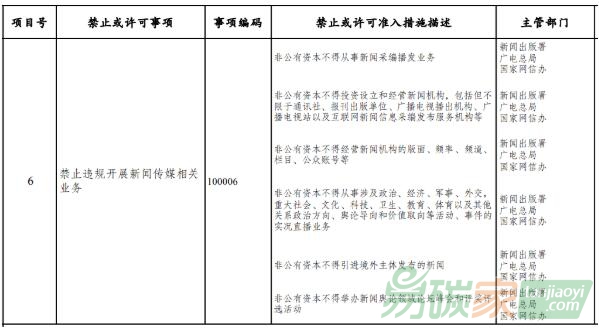 ②非公有資本不得投資設(shè)立和經(jīng)營(yíng)新聞機(jī)構(gòu),包括但不限于通訊社、報(bào)刊出版單位、廣播電視播出機(jī)構(gòu)、廣播電視站以及互聯(lián)網(wǎng)新聞信息采編發(fā)布服務(wù)機(jī)構(gòu)等。