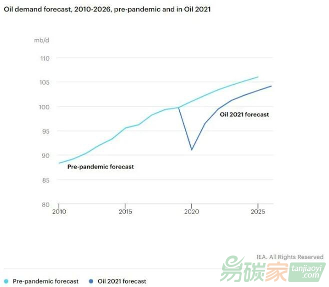 2010-2026石油需求量預(yù)測(來源:IEA)