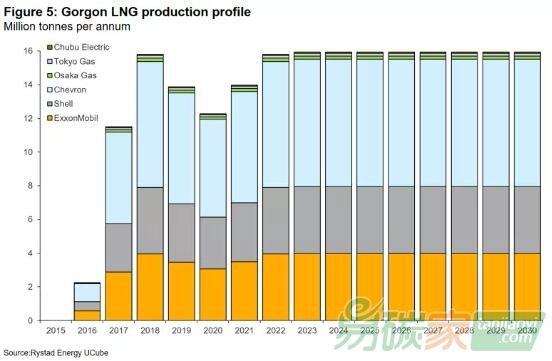 Gorgon項目LNG產(chǎn)量(百萬噸/年)[6]