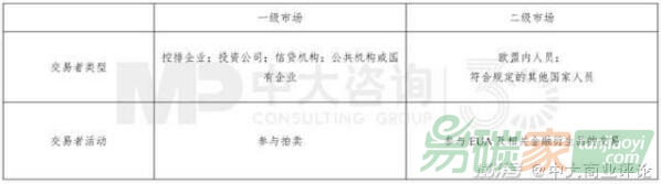 在歐盟碳排放交易體系的運行過程里,企業(yè)作為交易者主要參與配額分配(配額拍賣形成的一級市場)和配額交易(EUA、CER及相關(guān)金融