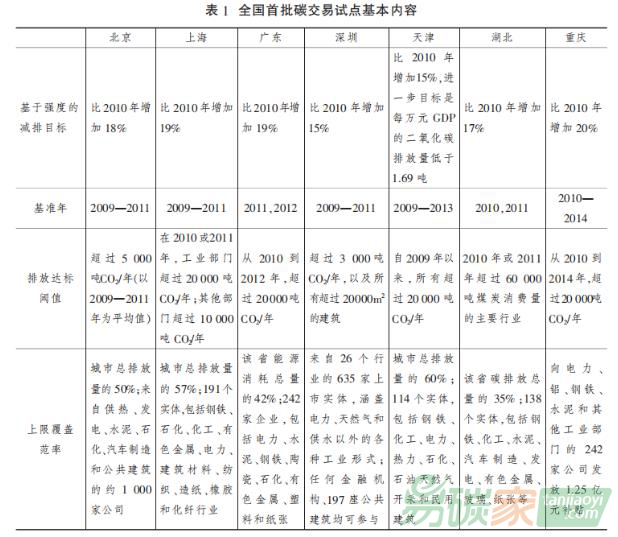 我國區(qū)域性碳排放權交易試點及其在制 度體系方面的探索