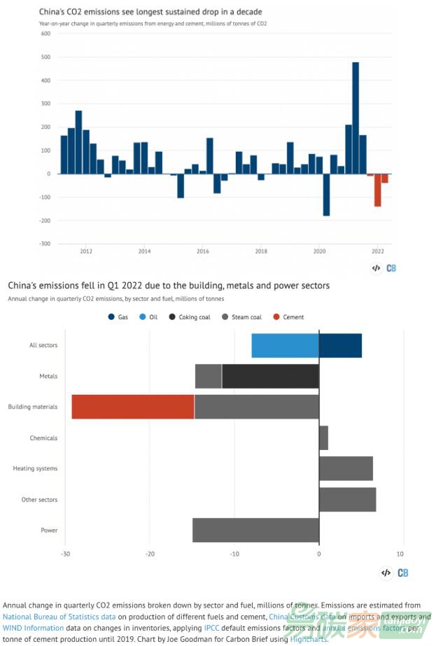Carbon Brief機構根據(jù)中國官方數(shù)據(jù)和商業(yè)數(shù)據(jù)的最新分析顯示,中國連續(xù)三個季度的