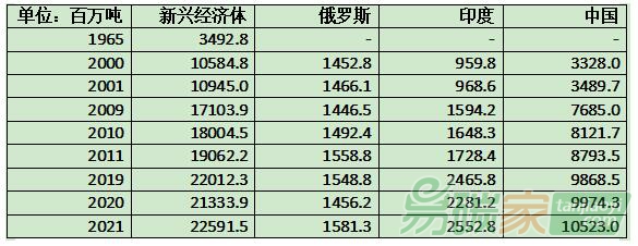 碳排放增速已經(jīng)基本穩(wěn)定的時候,新興經(jīng)濟體的碳排放增速才開始加快。1965年新興經(jīng)濟體碳排放34.92億噸,2000年達到了105.84億噸,增長了203%。2001-2009年,新興經(jīng)濟體的碳排放進入了快速增長期,從2001年的109億噸增加到2009年的171億噸。與發(fā)達國家碳排放趨勢不同,2008-2009年美國次債危機惡化歐洲債務危機,并沒有讓新興