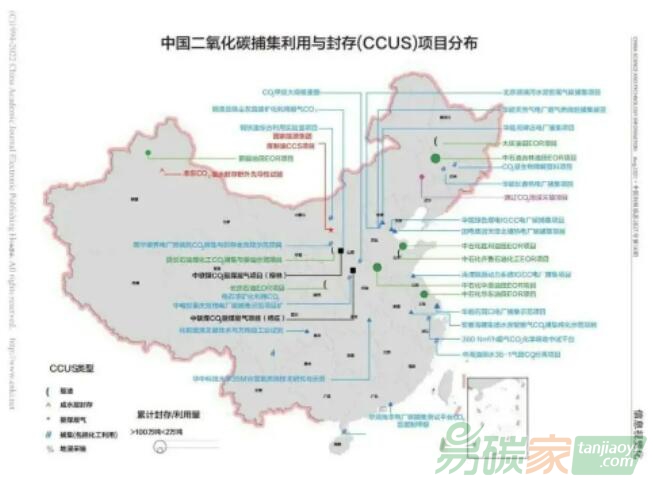 下面此圖匯總了我國(guó)碳捕集項(xiàng)目數(shù)量及地區(qū)分布情況,來(lái)自《中國(guó)科技信息》雜志,并增加了2022年最新開(kāi)工的CCUS項(xiàng)目及運(yùn)