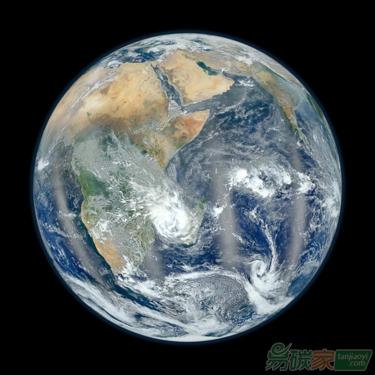 在這張“藍色大理石”般的畫面中,可以看到地球的東半球,該圖是由NASA的“索米NPP”衛(wèi)星拍下的。