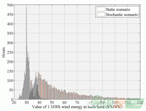 文章依據(jù)加州碳交易地板價(jià)和2011年二氧化硫和氮氧化物交易價(jià)格,推算了不同制度安排下單位風(fēng)電的價(jià)值。結(jié)果如下圖所示,與要求風(fēng)電穩(wěn)定供電(Stochastic情景)相比,豁免風(fēng)電的穩(wěn)定供電責(zé)任(Static情景)大幅降低了風(fēng)電的價(jià)值,而政府在兩種制度下扶持風(fēng)電的支出是一樣的,消費(fèi)者在豁免風(fēng)電穩(wěn)定供電責(zé)任下的支付還要更高。