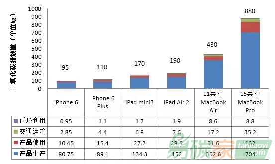 蘋果公司推出的每款產(chǎn)品都有自己的環(huán)境報告,分別從產(chǎn)品生命周期碳排放量,有毒害物質(zhì)分析,能源效率,材料效率四個方面,對產(chǎn)品的環(huán)保性能進行測評。比如在iPhone 6 Plus的環(huán)境報告中顯示,iPhone 6 Plus整個生命周期會排放110kg二氧化碳,其中產(chǎn)品生產(chǎn)占81%,產(chǎn)品使用占14%,交通運輸占4%,循環(huán)利用占1%。與之相比,同期產(chǎn)品iPhone 6排放95kg二氧化碳,其中,生產(chǎn)階段所產(chǎn)生的排放量比iPhone 6高10%,用戶使用階段排放量高40%。所以,iPhone 6的用戶們不要覺得手機屏幕不夠大不夠炫酷,相反,你選擇的是一款更為低碳環(huán)保的產(chǎn)品。