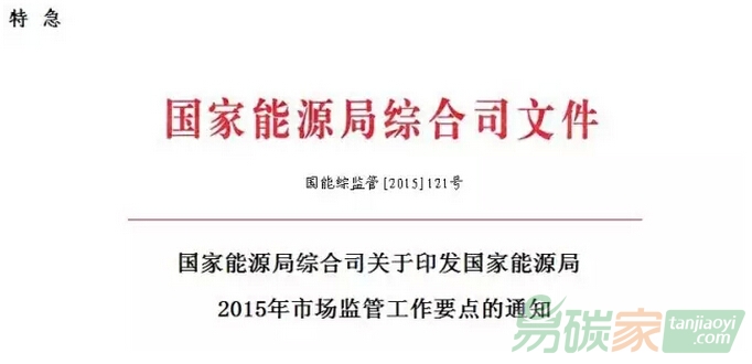 國家能源局2015年市場監(jiān)管工作要點(diǎn)
