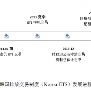 • 韓國排放交易制度(Korea-ETS)發(fā)展進程圖、控排企業(yè)數(shù)量、配額發(fā)放以及抵消比例