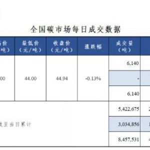 • 全國碳市場今日收跌2.95% 報44.67元/噸