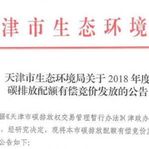 天津市生態(tài)環(huán)境局發(fā)布了關(guān)于2018年度碳排放配額有償競(jìng)價(jià)發(fā)放的公告