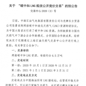 2020年6月29日上海石油天然氣交易中心發(fā)布關于“碳中和LNG船貨公開競價交易”的預公告【交易中心2020(3)號】文件,采用線上競拍的方式來...