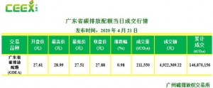 • 【每日碳情】廣東省碳排放配額4月20日成交行情