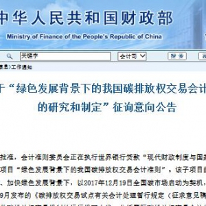 • 關(guān)于“綠色發(fā)展背景下的我國(guó)碳排放權(quán)交易會(huì)計(jì)準(zhǔn)則的研究和制定”征詢(xún)意向公告