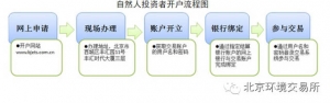 北京環(huán)交所現(xiàn)已開通自然人投資者在線申請開戶。開戶流程:(一)網(wǎng)上申請:請登錄www.bjets.com.cn網(wǎng)站注冊,提交開戶申請,填寫并上傳開戶資料,收到系統(tǒng)發(fā)出的審核通過郵件后,選擇預(yù)約開戶日期。(二)現(xiàn)場辦理( ...